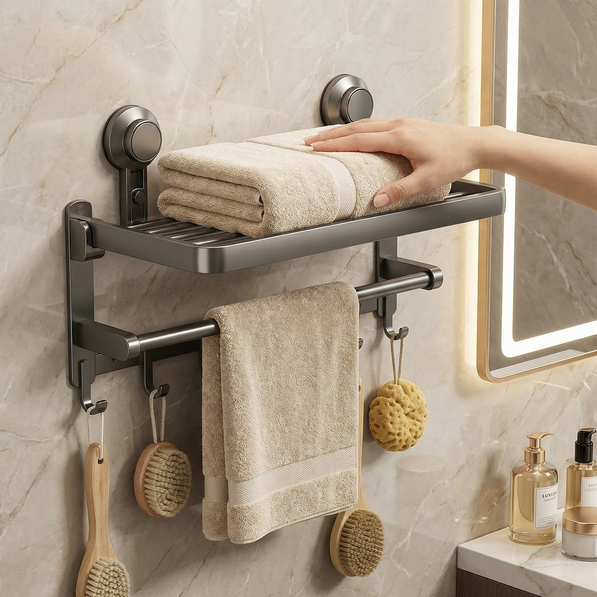 Tired of towels piling up, falling off hooks, or taking over precious space in your bathroom? Traditional racks require drilling, damage your walls, and often feel bulky or inconvenient. If you live in a small space or simply want a cleaner, more organized look, messy storage can quickly become frustrating.